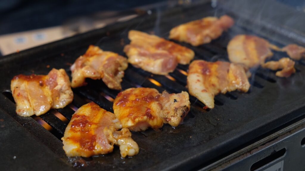 味噌ダレで香ばしく焼かれた瞬間、店が煙に包まれる。祭壇のような煙。儀式の始まり。