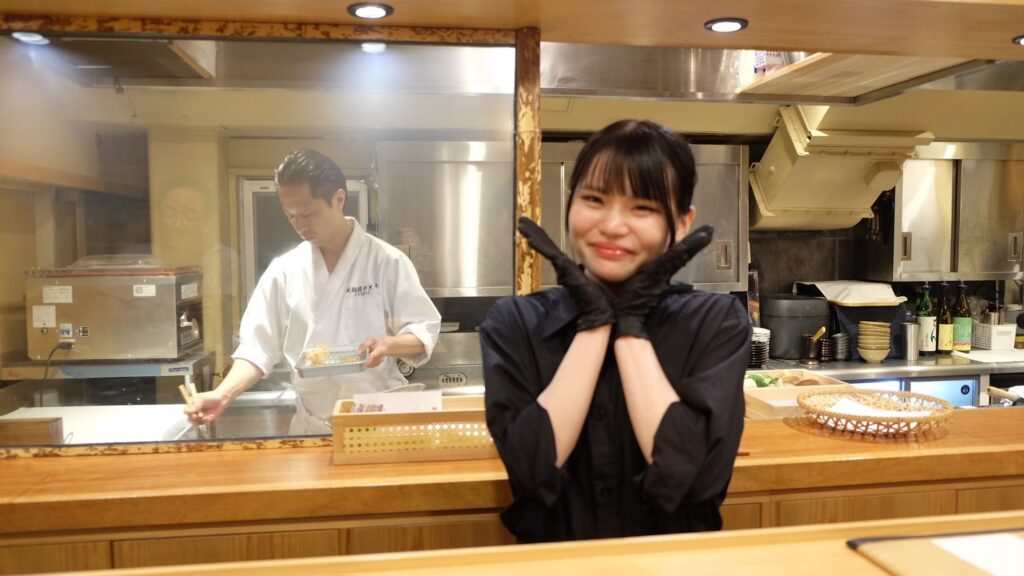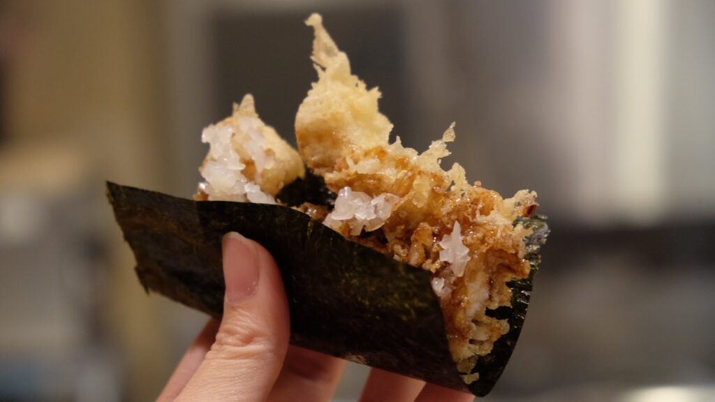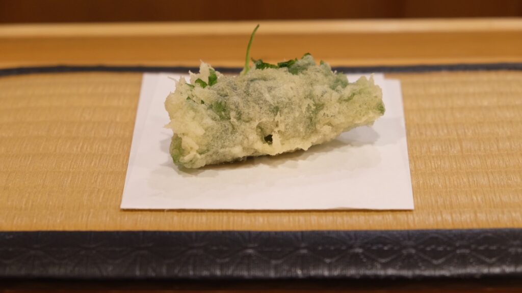 見た目からは想像できない手触りに思わず笑ってしまう。ここから、天婦羅の宴が始まる。