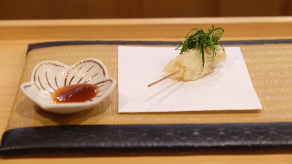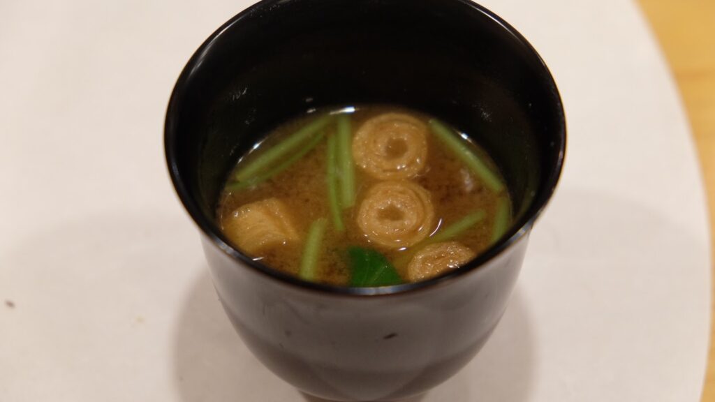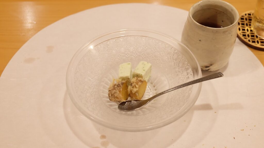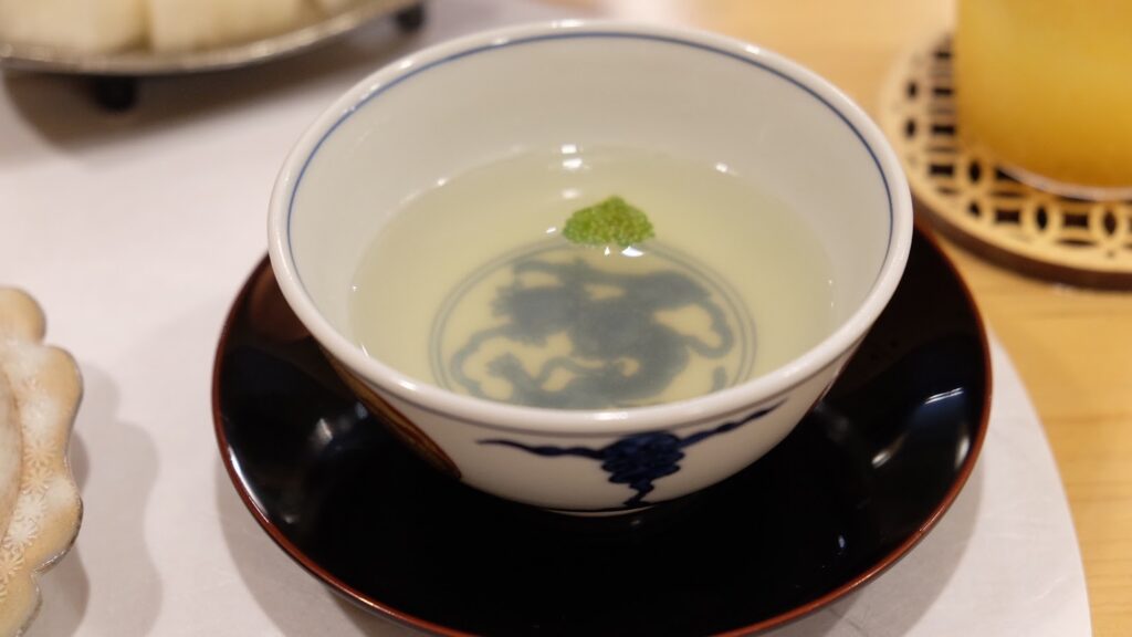二口目はわさびの辛味が重なり、一気に酒の肴に変わる。第一品目としてふさわしい導入だ。