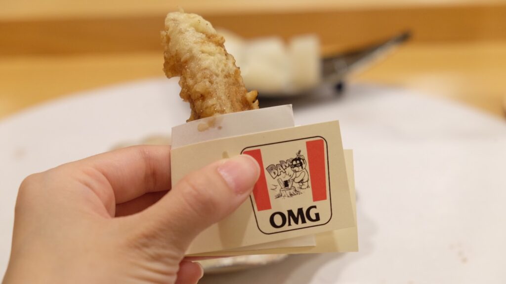 サクサクの衣の中にホクホクの実。OMG印の看板天ぷら。